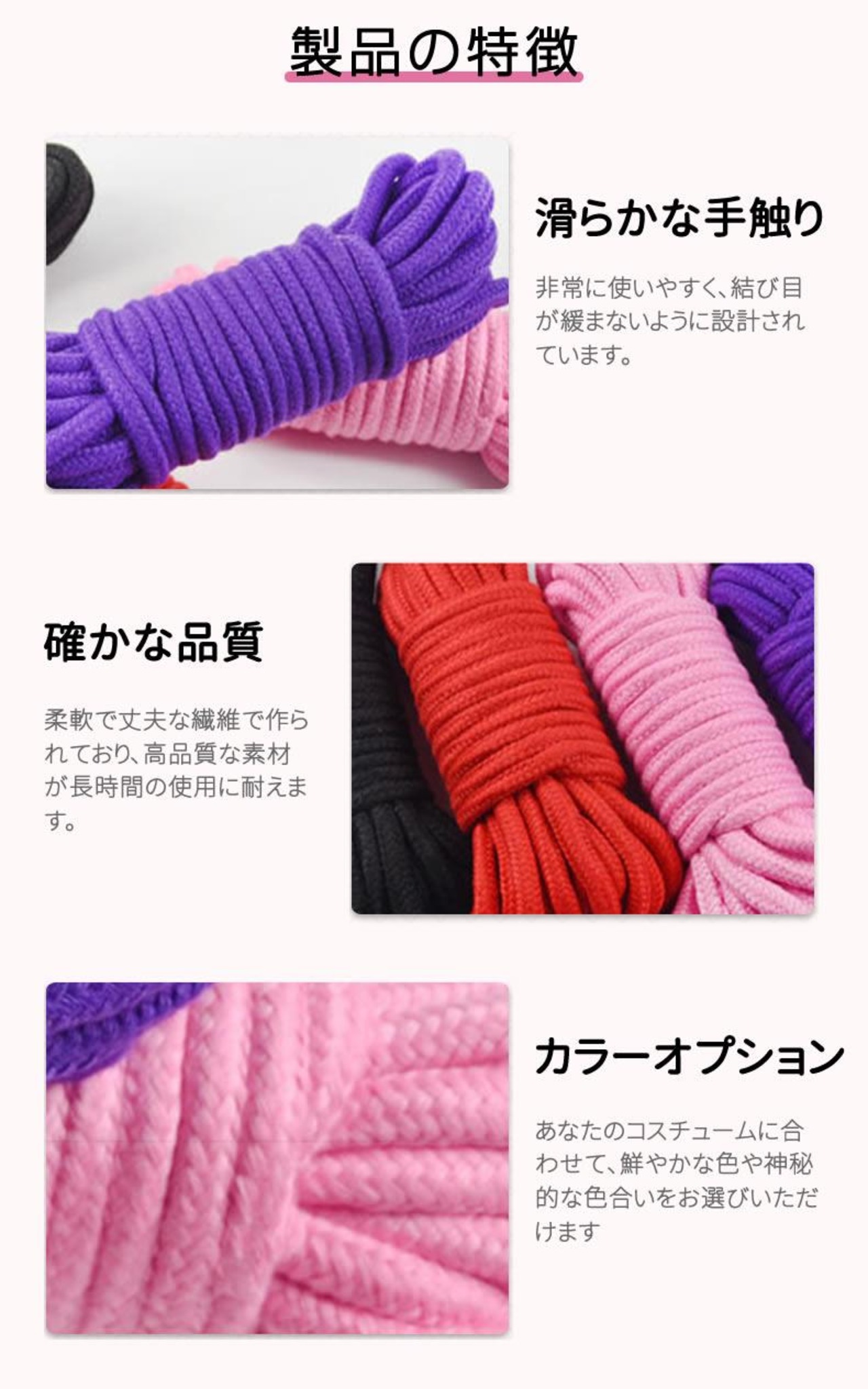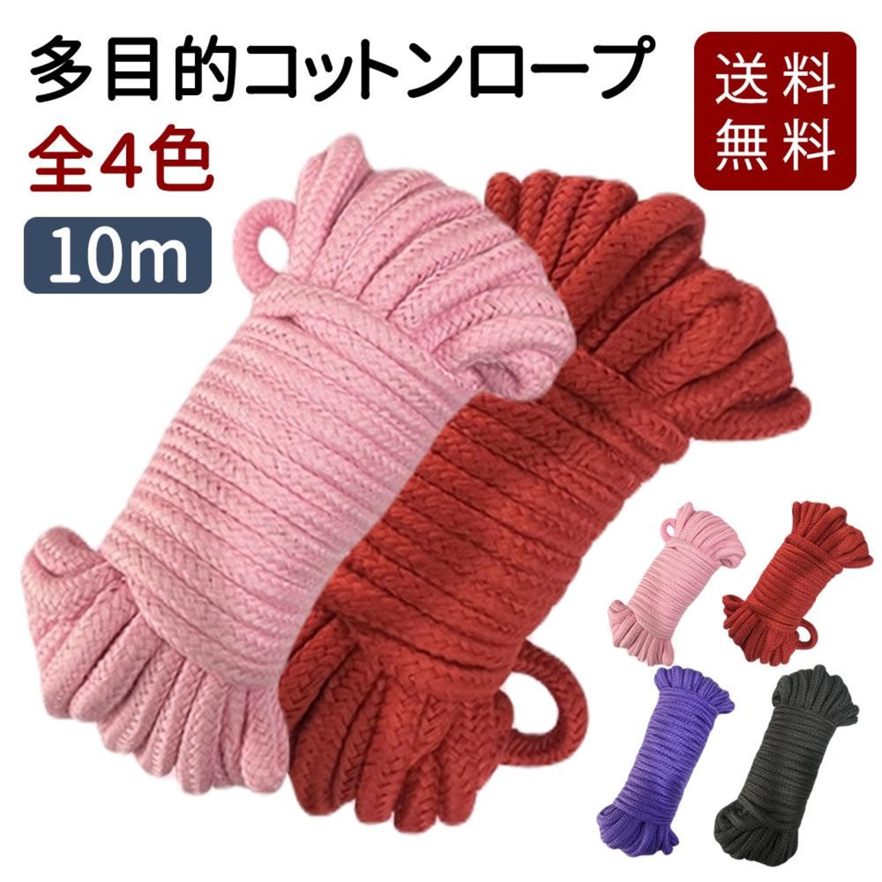 [F NODE] \Y!5位/セクシーグッズ 綿 ロープ SM 縄 コスプレ 10m 8mm径 全4色 SMロープ 道具 クリーニング レディース 赤 黒 紫 桃 SMプレイヤー 洗濯 清潔 亀甲