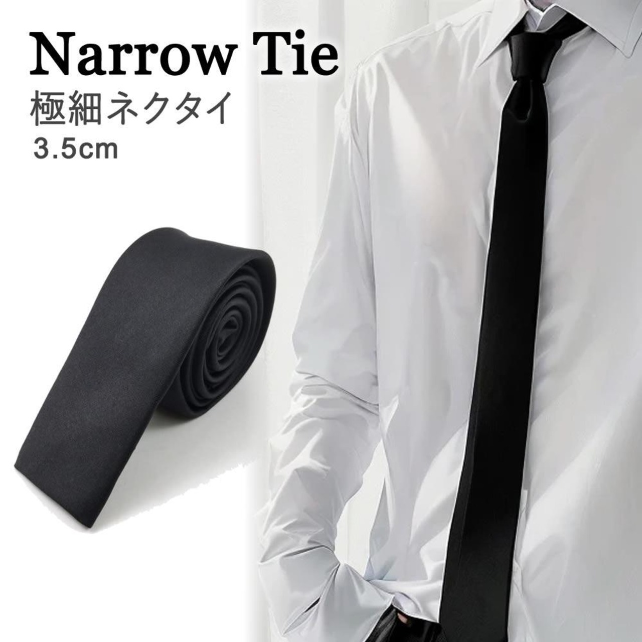 このナロータイは、シンプルでエレガントなデザイン。ビジネスや結婚式、葬儀、コスプレなど、幅広いシーンでお使いいただけます。